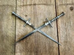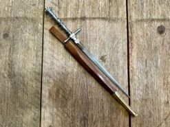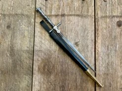The Pitt Rivers stiletto is a very close reproduction of a mid 17thC North Italian dagger in the Pitt Rivers Museum in Oxford. This beautiful dagger is styled very typically and has a blade designed purely for thrusting as the original had and comes with a double layer naturally tanned leather sheath with a latten (brass) chape.