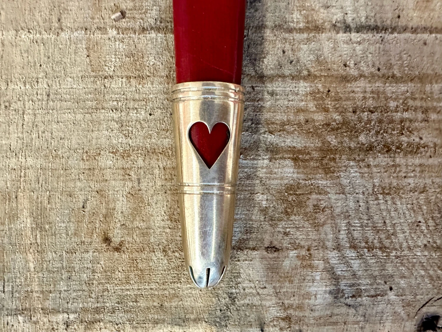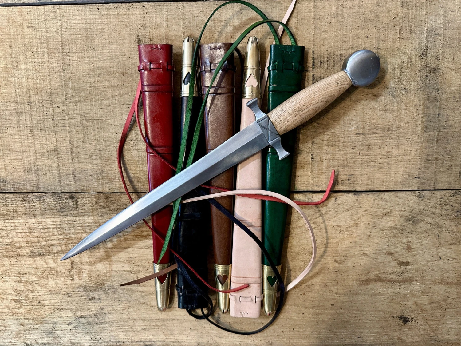 Comes with a double layer naturally tanned leather sheath with a latten chape featuring the symbol of a heart.