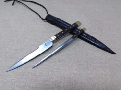 This medieval eating knife is based on a River Thames find but is typical for a lot of European countries too. Medieval eating knives were often paired with a pricker to make an ‘eating set’.