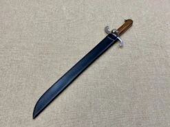 In many of Bruegel’s paintings you see fairly low status men carrying short messers (bauernwehr), often with a side ring and a knuckle bow and this is of that form. Featuring a stout blade of appleseed grind with a distinct distal taper. This form of short sword was popular throughout the 16thC.