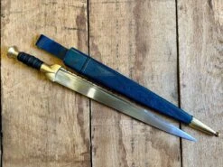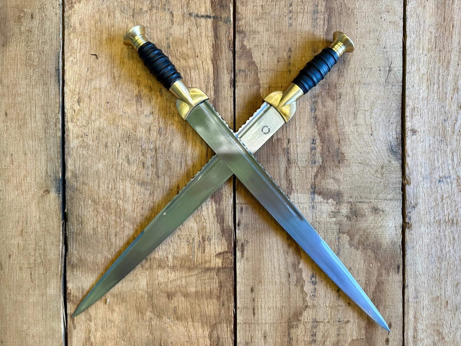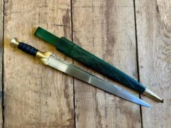 We have 3 sizes of this style; the Sgian Dhu, the short brass and black wood dirk, and the long brass and black wood dirk. ย Available individually or as a set.