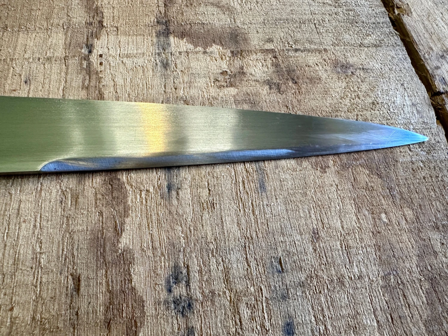 Semi-Sharp is ‘butter knife sharp’; it has a very fine flat on the edge