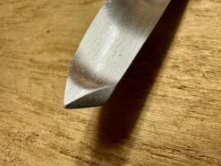 Knife comes as semi-Sharp which means it is ‘butter knife sharp’ andย has a very fine flat on the edge