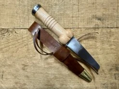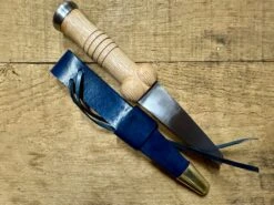 Comes with a naturally tanned leather sheath fitted with a hanging loop and a tying thong.