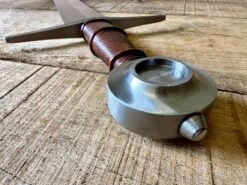 The hand forged sword is made from 1060 spring steel has a cord wrapped leather grip, and comes complete with a period appropriate wood cored scabbard covered in naturally tanned leather and a suspension harness, all finished with brass (latten) fittings. ย Will fit a waist from around 30โ- 44โ/76cm – 106cm