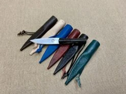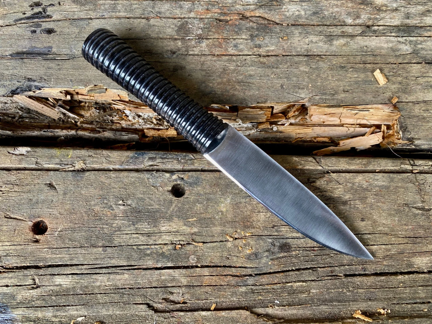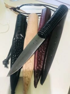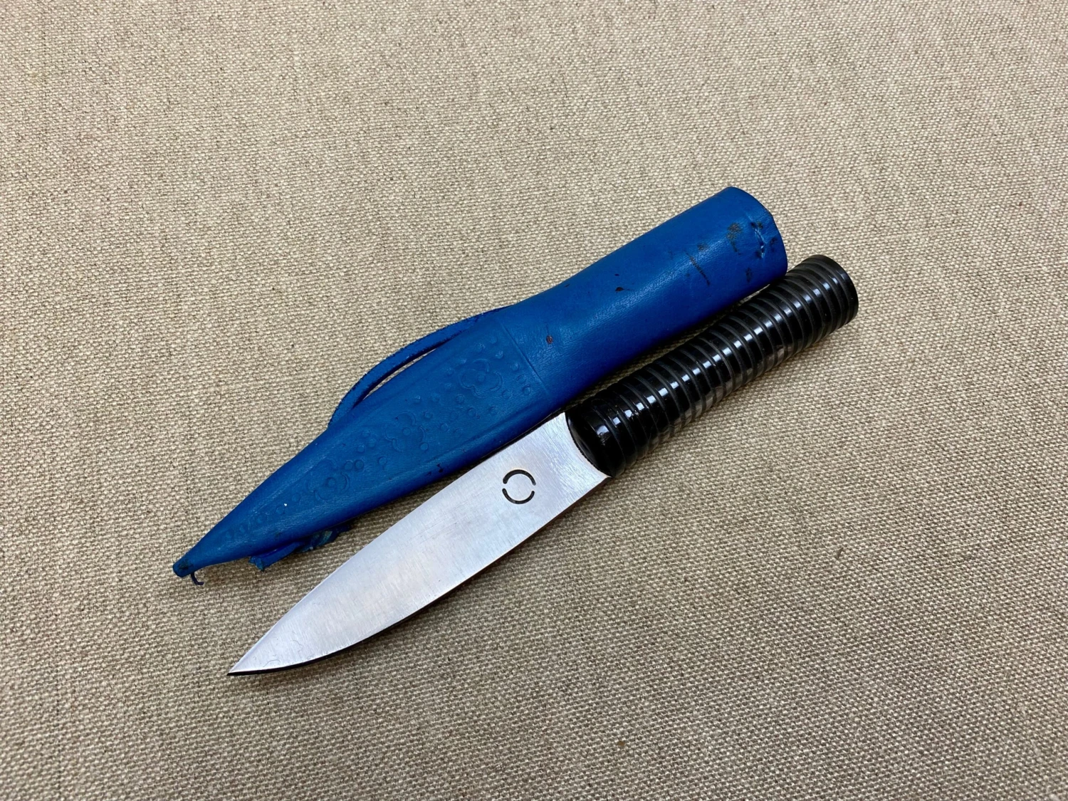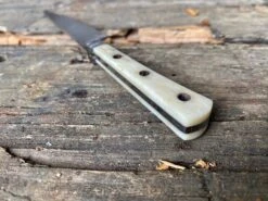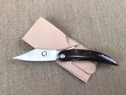 A simple reproduction peasants knife with a turned horn handle, makes this ideal for the poorest of people or just as a working knife.