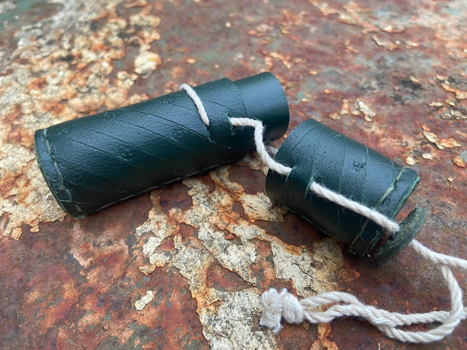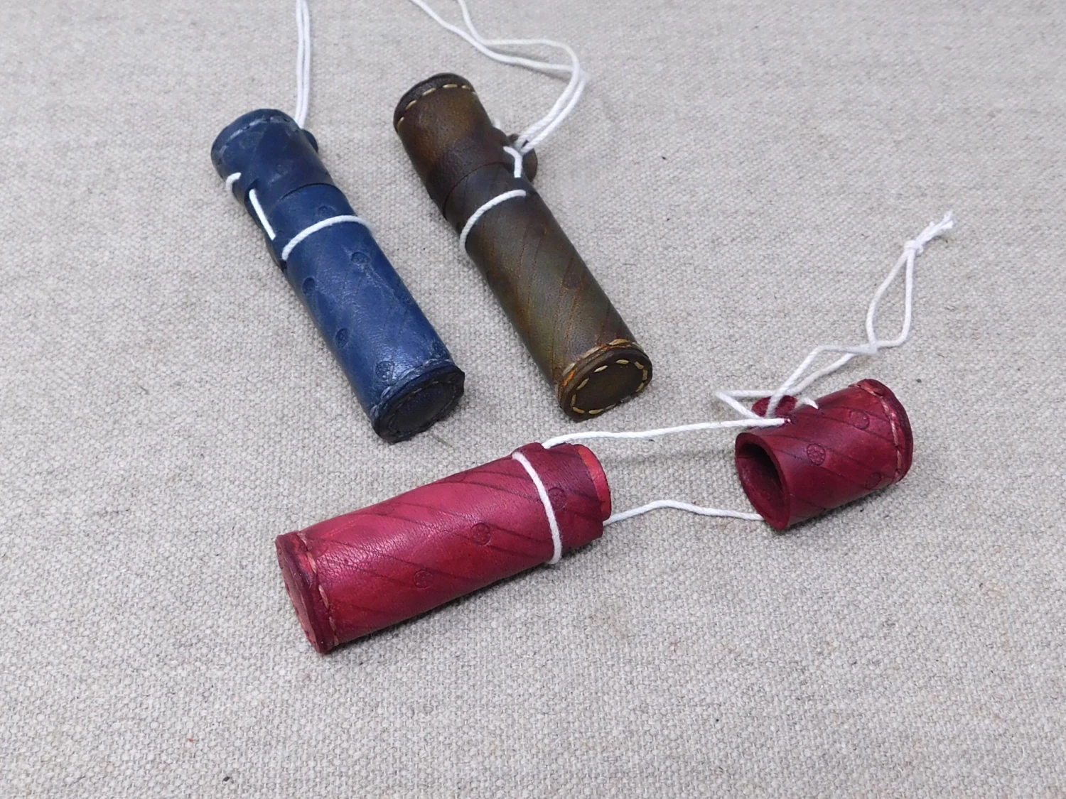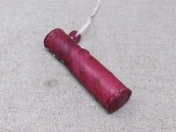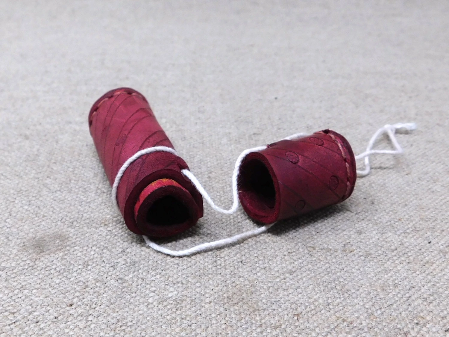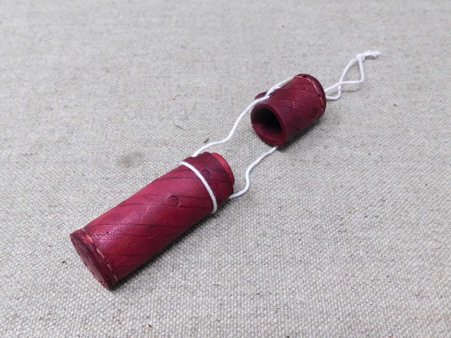 13thC-17thC leather needle case in veg tan leather with incised decoration, 85mm/3.25” inside.