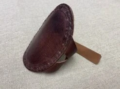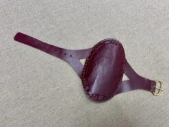 13th-16thC oval bracer, made with two layers of bonded and stitched leather 3mm thick., 14cm/5.5” long