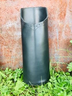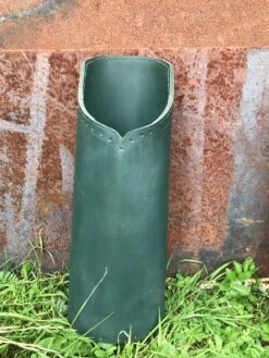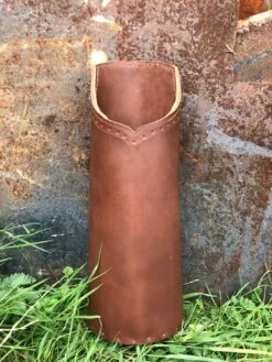 14th to 16thC crossbow bolt quiver in heavy veg tan leather, 37cm/14.5β tall.