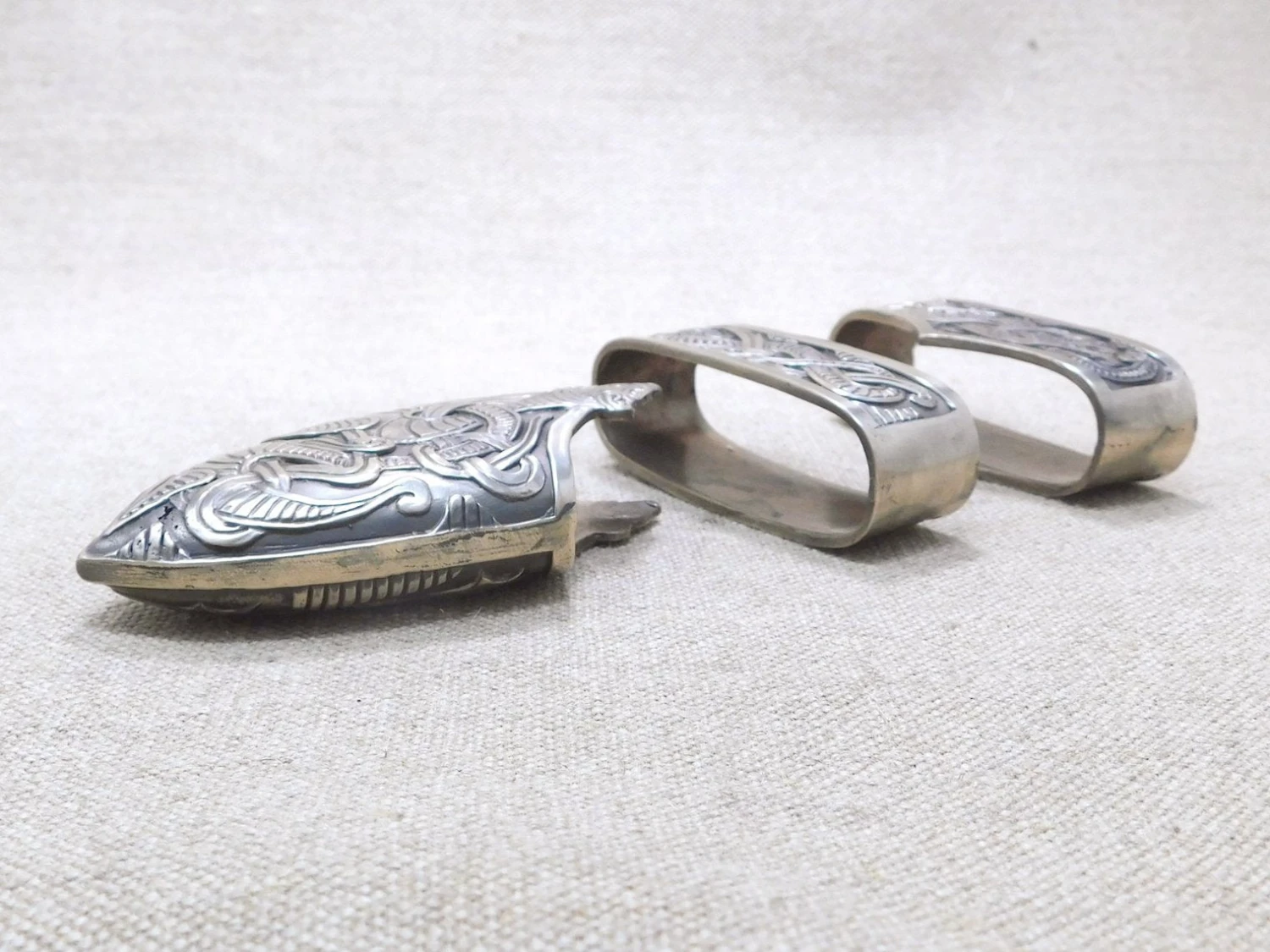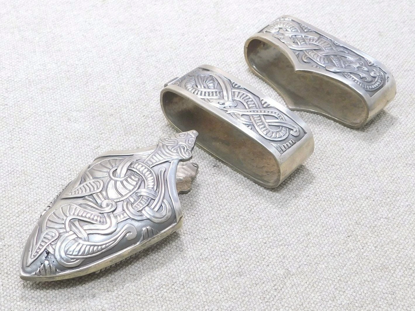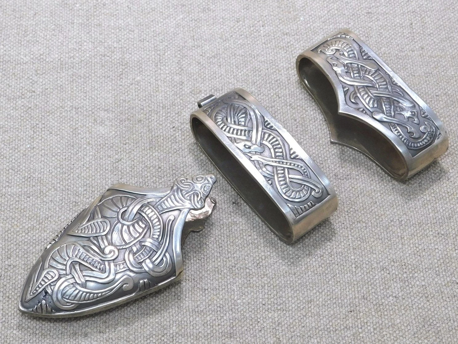 Scabbards, belt parts, buckles and plates
