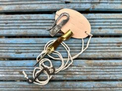 This medieval sling is based on a fairly normal construction type of a veg tan leather pocket with slits allowing it to be moulded slightly and comes with waxed cords and a finger loop. The cords are 36″/90cm long.