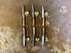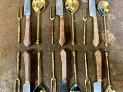 PLEASE NOTE, this bundle #2 contains only six pairs of brass spoons and forks. The eating knives pictured are from The Dinner Party Feasting bundle #1