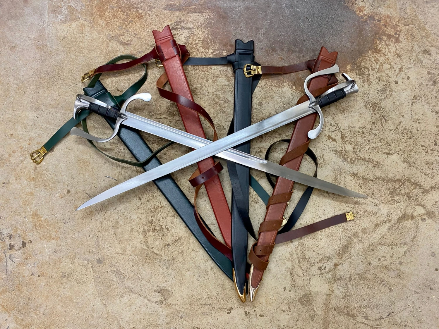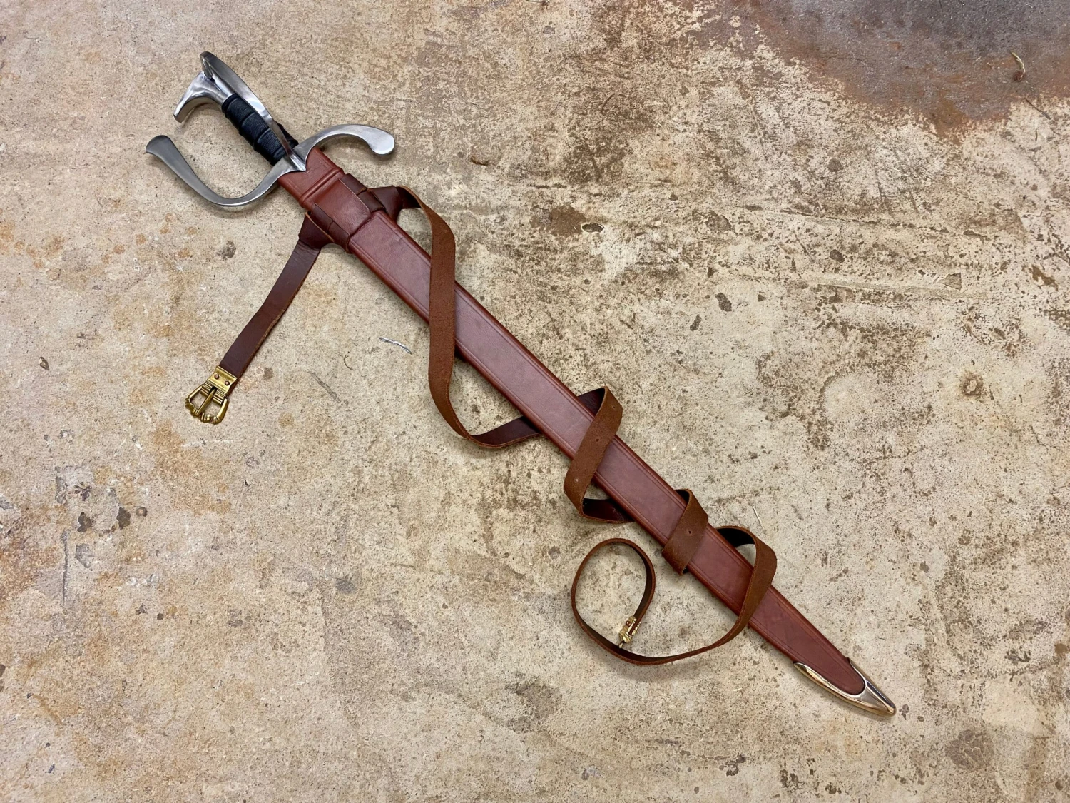 Sword comes complete with a period appropriate leather covered, wood cored scabbard and belt with copper alloy fittings. PLEASE NOTE some of the colours shown in the photos have no chape. Chapes will be fitted before the swords are shipped. Please refer to the black example for the finished look. If your colour of choice is out of stock, why not try a different colour, it can then be shipped straight away usually?