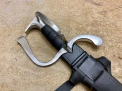The Wakefield Falchion is seen from around 1450-1500 single handed medieval sword. Wakefield Hangers were a family of swords The โfalchionโ or โhangerโ developed during the Wars of the Roses.ย Designed to offer men at arms, foot soldiers and archers excellent hand protection in a compact, light and agile side arm.ย This family of swords are often referred to as Wakefield Hangers and have either a knuckle stud or full knuckle bow.ย Our version is based on the IX.144 from the Royal Armouries and incorporates the full knuckle bow I believe the sword originally had. These type of short swords were also popular sidearms for billmen and archers during the Wars of the Roses the early Tudor period.
