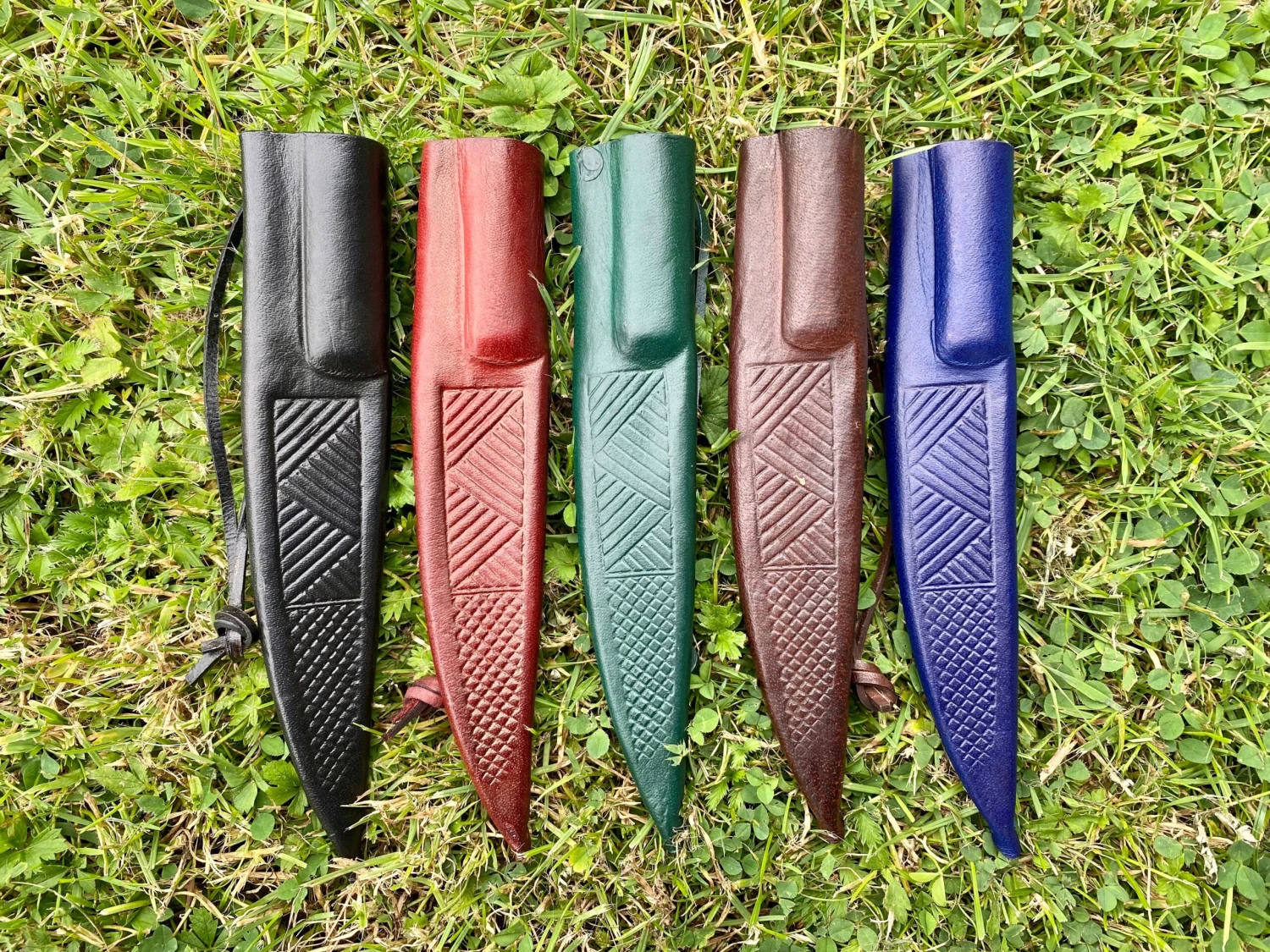 PLEASE WRITE YOUR FIRST CHOICE OF COLOURS FOR THE SHEATHES IN THE NOTES AND WE WILL TRY OUR BEST TO MAKE YOU HAPPY! Currently we have: Black, Brown, Red, Green, Blue and natural. If you do not state a colour on your order we shall choose a suitable colour which can not be changed once shipped.